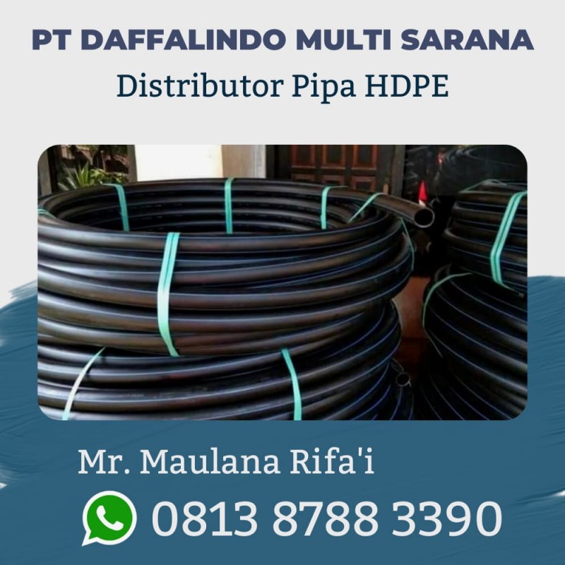 PIPA HDPE (High Density Poly Ethylene) merupakan sistem perpipaan yang terpercaya dengan karakteristik yang istimewa dan sesuai untuk aplikasi air minum bertekanan karena terbuat dari Polyethylene (PE). Materialnya memiliki tingkat keretakan yang rendah, daya tahan impact yang tinggi dan elastisitas yang tinggi sehingga memiliki life time lebih dari 50 tahun. Pipa Pipa HDPE tersedia dalam bentuk batangan dan gulungan (coil), sehingga mempermudah dalam proses transportasi dan instalasi.